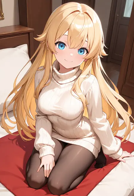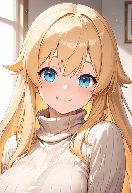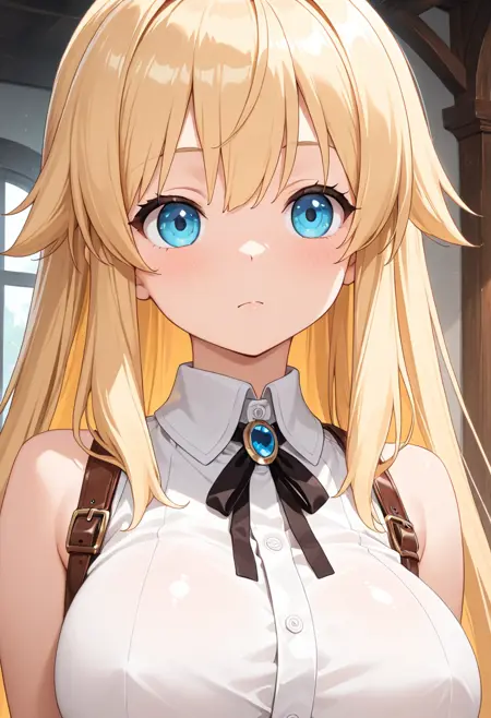 maeve_scarlet_girls_nekoforge, 1girl, blue eyes, blonde hair, long hair, medium breasts, white deer antlers, no animal ears