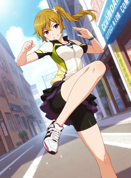 cycling shirt, wristwatch, miniskirt, cycling shorts,靴/鞋子/Footwear:
