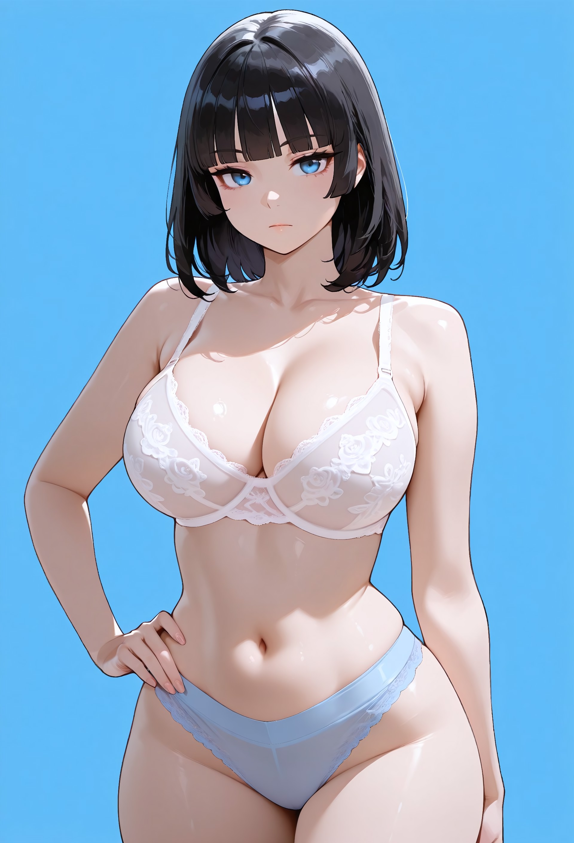 インナー - 白いブラジャー、青いパンツ