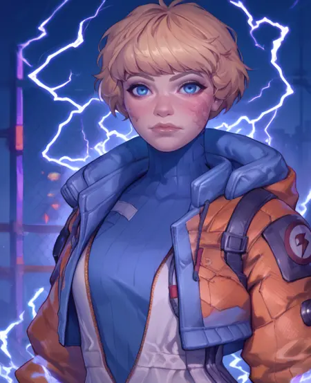 wattson, 青い目、顔に傷跡、または左頬に傷跡、金髪