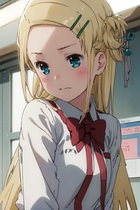 Sotoka_Rakita,脸颊泛红,蓝色眼睛,金发,发饰,发簪,长发,非常长的头发,