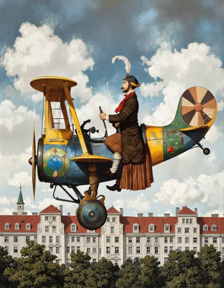🎨 다론 모우라디안은 1961년 에레반에서 태어난 아르메니아 화가입니다. 그의 환상적이고 초현실적인 작품은 동양과 서양의 영향을 융합하며, 아르메니아 문화, 중세적 이미지, 신화, 성경에서 깊이 영감을 받습니다. 정교한 세부 묘사와 아이러니적 서사로 유명한 모우라디안은 기사가 대포알을 타고, 동화가 사회적 비판과 만나는 꿈 같은 세계를 창조합니다. 그의 작품은 파리, 뉴욕, 베이루트 등 세계적으로 전시되었습니다.