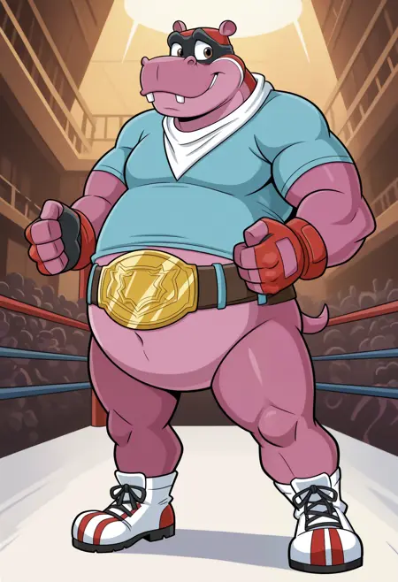 主な衣装: アイマスク、レスリングマスク、スカーフ、青いシャツ、レスリングベルト、指なしグローブ、レスリングシューズ、