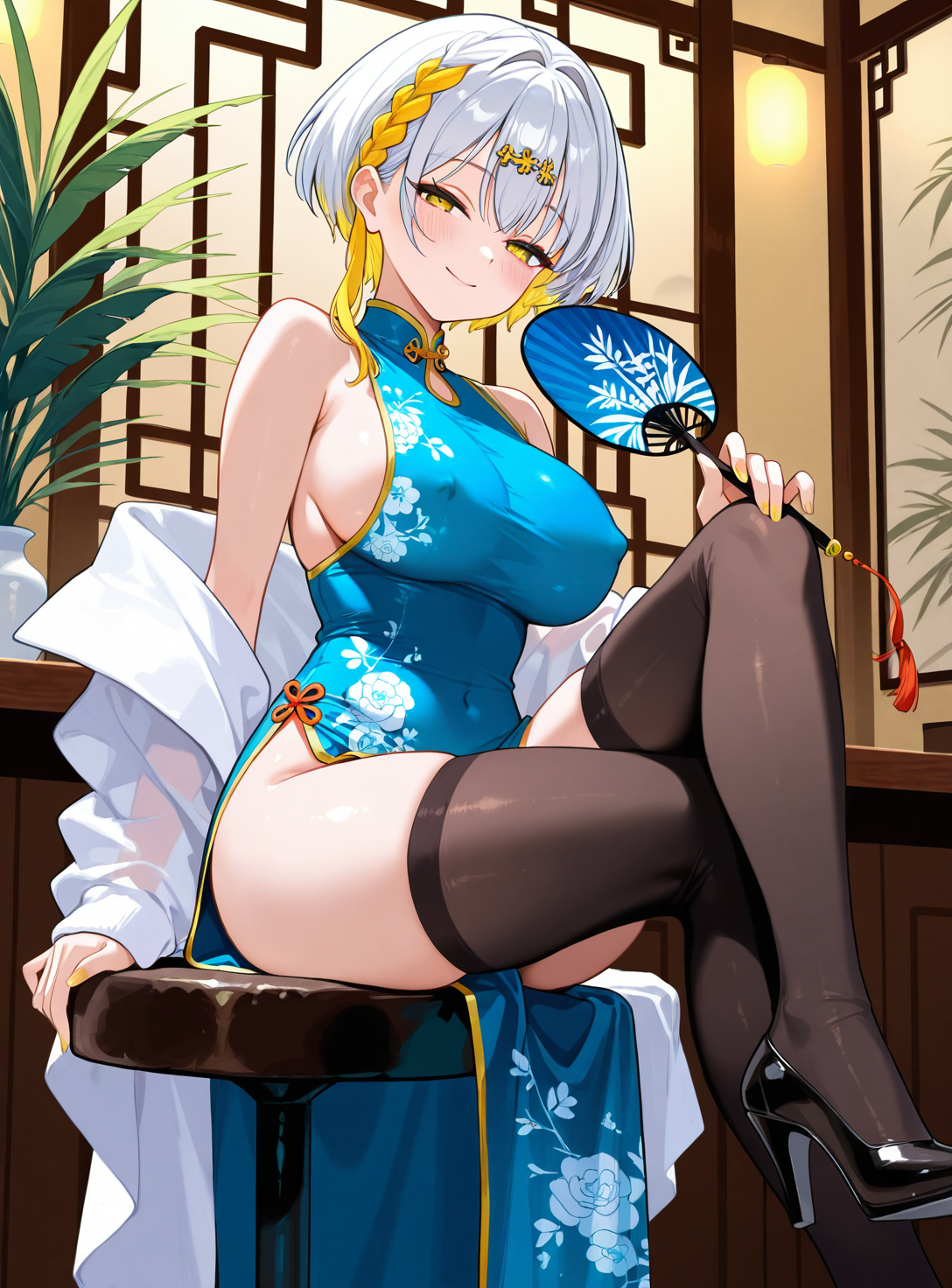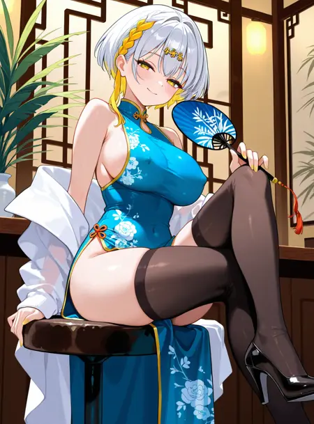 단발, 헤어핀, 한쪽 땋은 머리,옷: