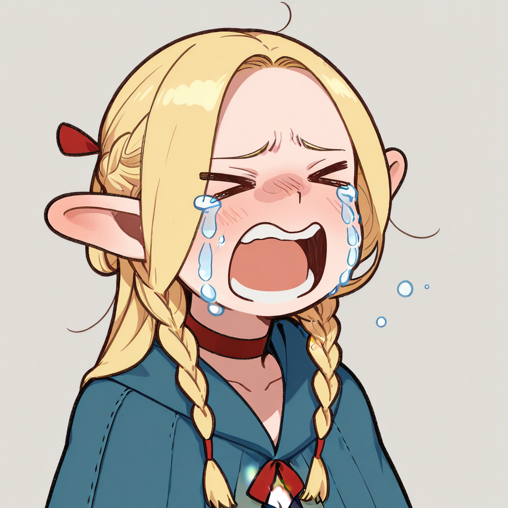 这是一个用于重现《地下城美食》第一卷第四章(煎蛋卷)中玛尔西勒哭泣表情的LoRA。为了更好地还原哭泣表情,请勿包含与眼睛颜色相关的提示,例如“蓝色眼睛”。