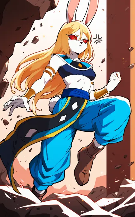 强化标签:白皮肤、红眼睛、红色眼白、兔耳朵、兔尾巴、金发、动物耳朵、长发、毛绒女性、毛绒、兔女郎
