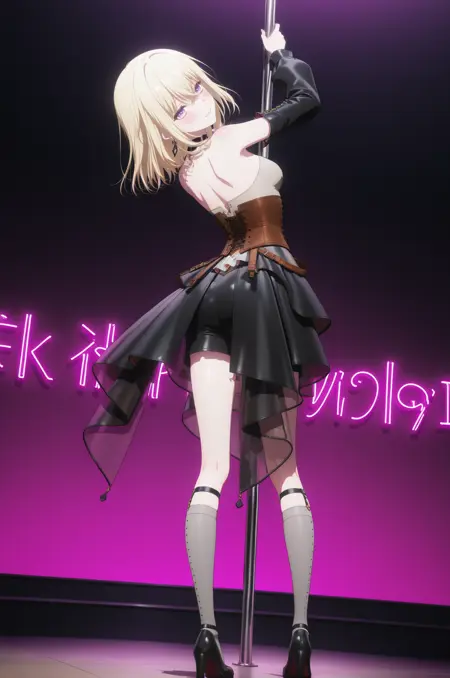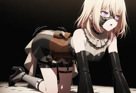 Optional clothing衣服1:diyitao,diyi bare shoulders,diyi black skirt layered,diyi black high heels,diyi black knee-length shorts,diyi brown corset,diyi detached sleeves,diyi earrings,diyi grey knee-high socks,diyi black choker,diyi black legwear garter at knees,
