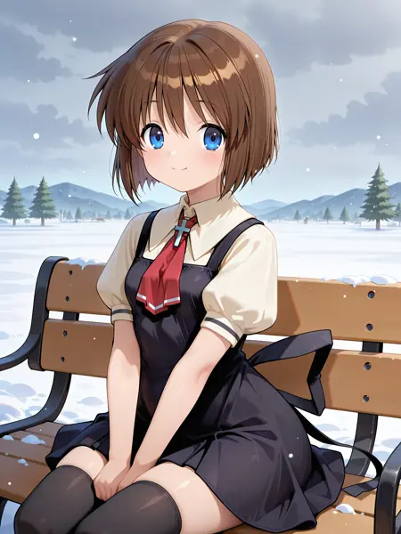 This uniform is deeply tied to the nostalgic, melancholic atmosphere of AIR, and is ideal for generating scenes that evoke the seaside town, endless blue skies, and the fleeting, fragile beauty that define the work.