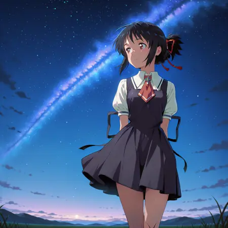 将此制服与符合作品氛围的背景或情境结合,可生成更具《AIR》风格的插画。