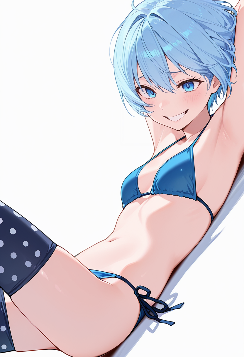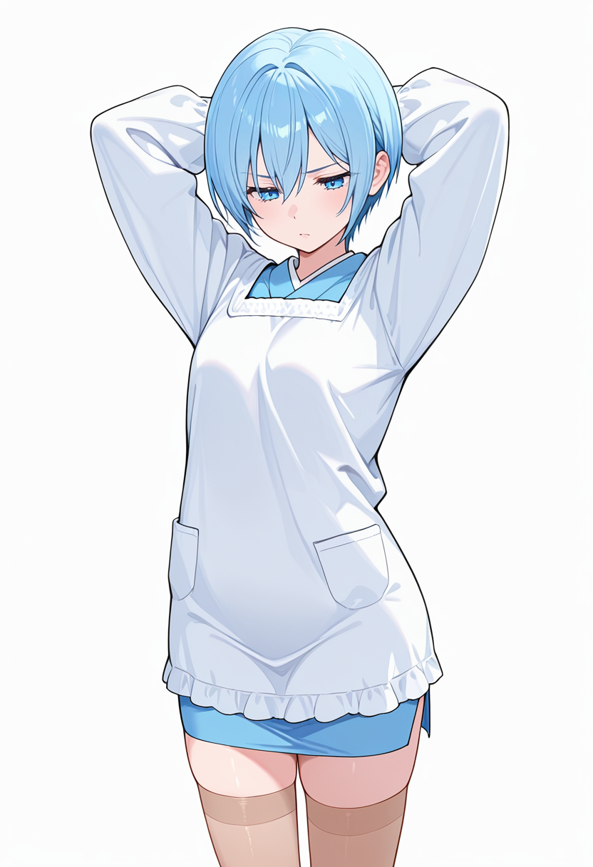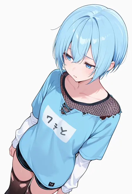 nokiels2_cnr, 1girl, blue hair,short hair,blue eyes,