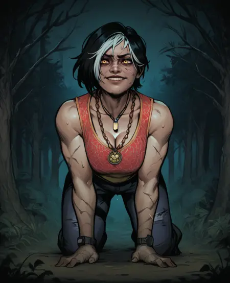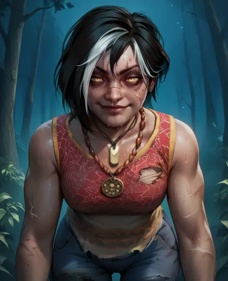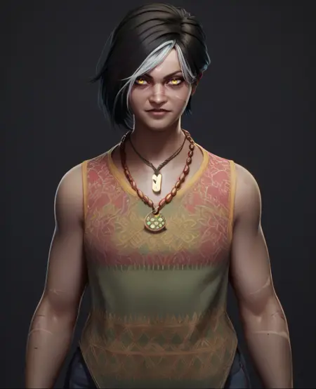 Haddie,双色头发,黑发,黄眼睛,疤痕,
