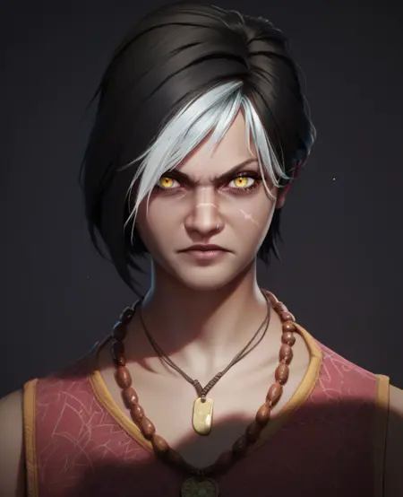Haddie, 이색 머리카락, 검은 머리카락, 노란 눈, 흉터,