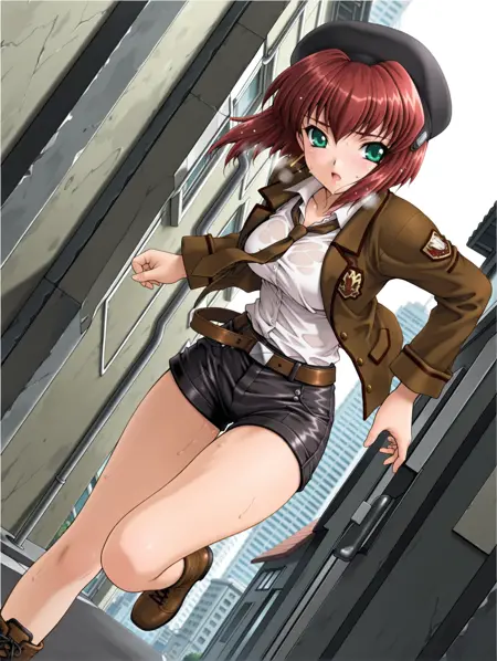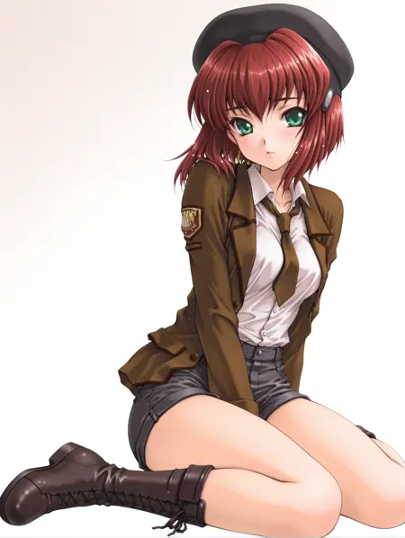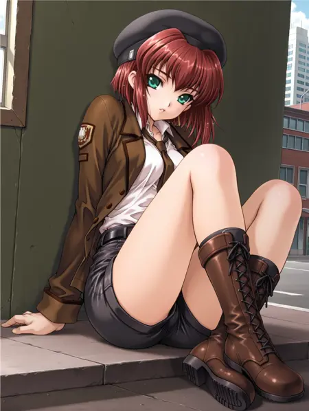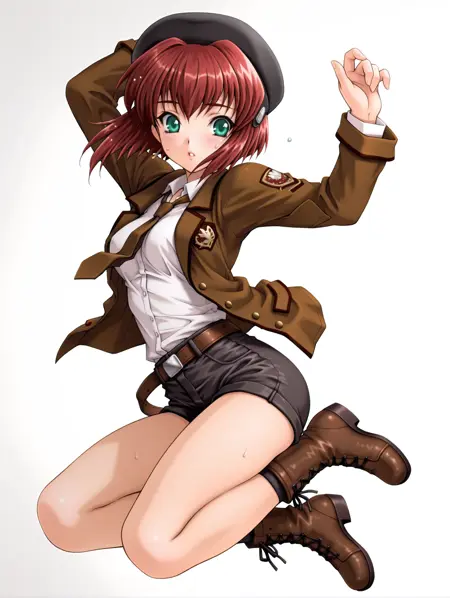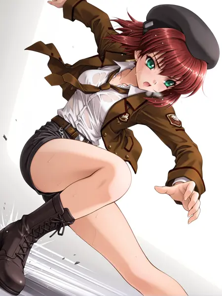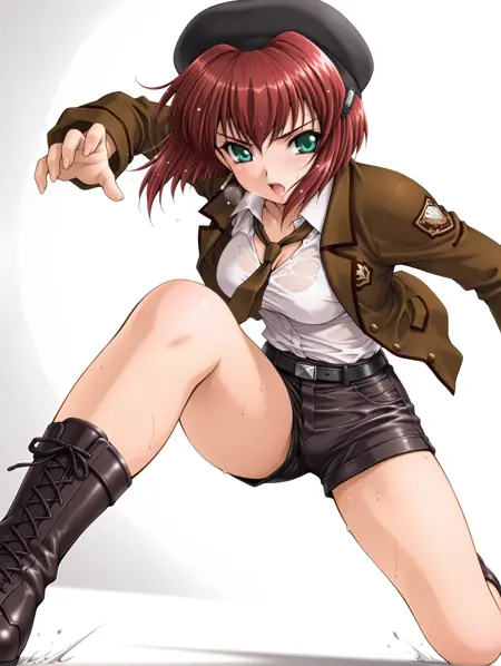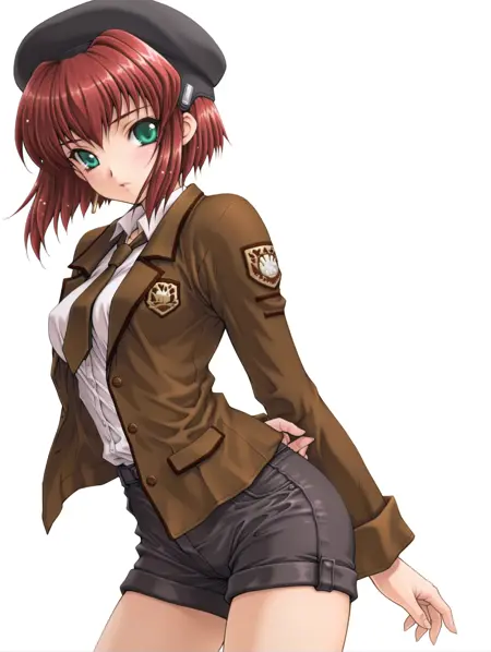 触发词:y_asami, green eyes, red hair, short hair, earrings,