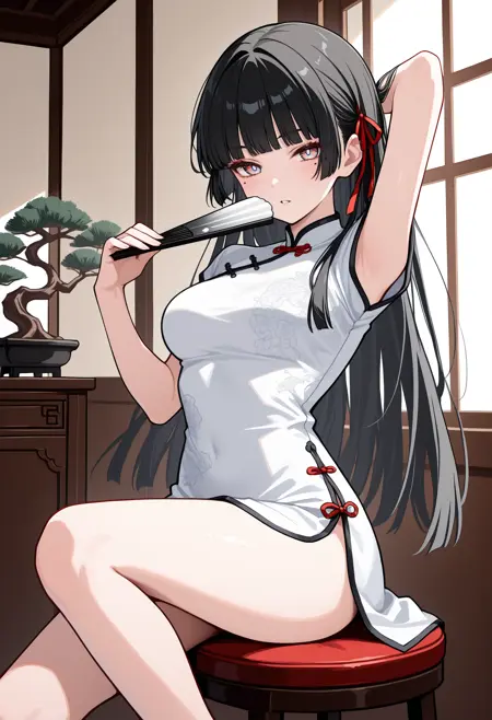 外貌: strychsa,姬发式,黑发,非常长的头发,异色瞳,红眼睛,蓝色瞳孔,白色瞳孔,眼下痣,中等胸部,