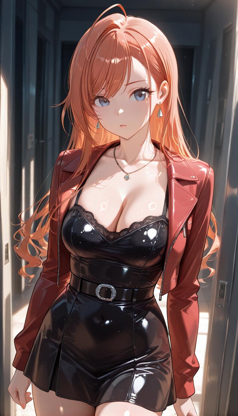 3. 긴 소매, 드레스, 가슴 노출, 보석, 재킷, 잠금뼈, 허벅지, 귀걸이, 열린 옷, 성기, 벨트, 목걸이, 검은 드레스, 열린 재킷, 짧은 드레스, 빨간 재킷, 버클, 검은 벨트, 크롭 재킷, 반짝이는 옷, 벨트 버클, 가죽, 가죽 재킷, 매달린 귀걸이,