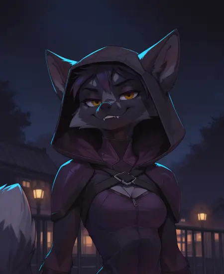 griz3ld4, thief, purple clothes, fully clothed, amber eyes
