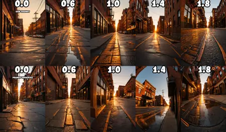 이 LoRA는 얼굴 비율과 장면 곡률을 과장하여 15mm 피셔아이 렌즈의 외관을 모방합니다. 수평선을 굽히고, 장면을 뒤로 당기며, 표현력 있고 감정적인, 또는 독특한 구성에 맞게 시야를 왜곡합니다.