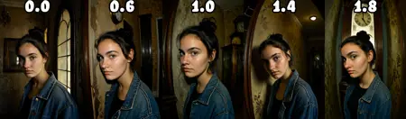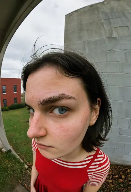 该 LoRA 会放大面部比例和场景曲率,模仿 15mm 鱼眼镜头 的视觉效果。它使地平线弯曲、拉远场景,并扭曲透视,从而增强富有表现力、情绪化或另类的构图。