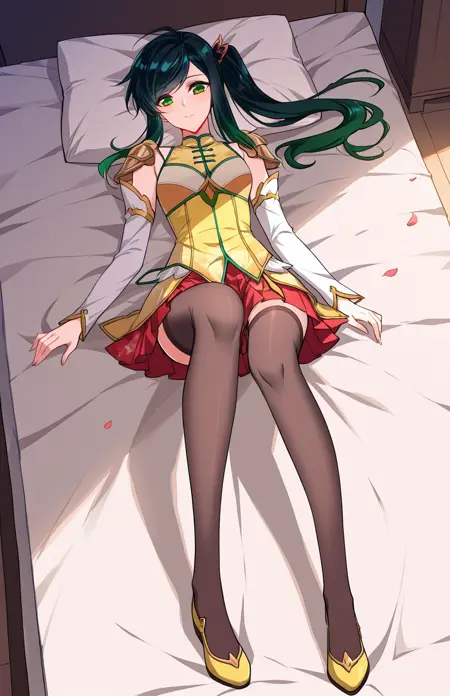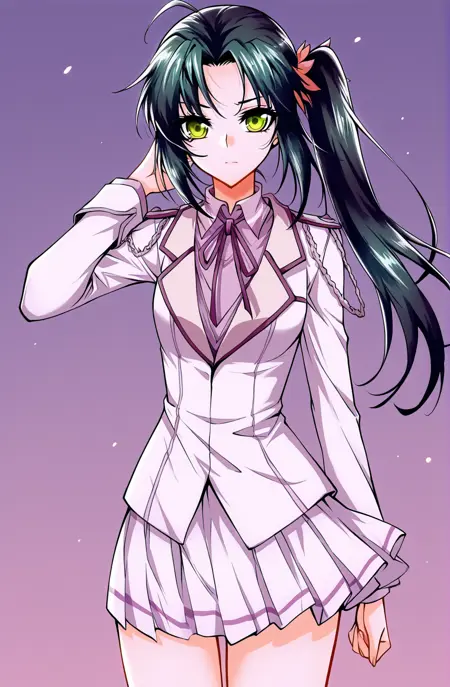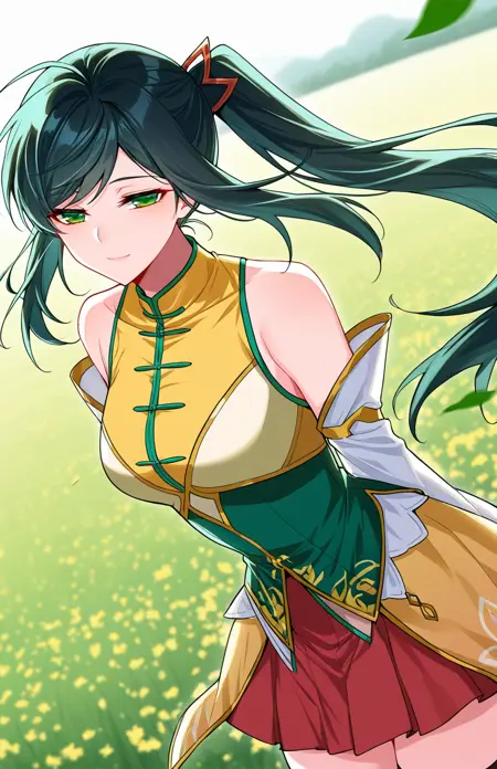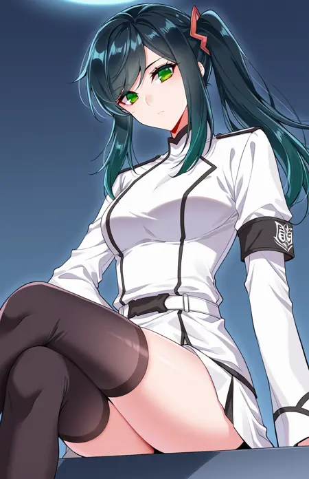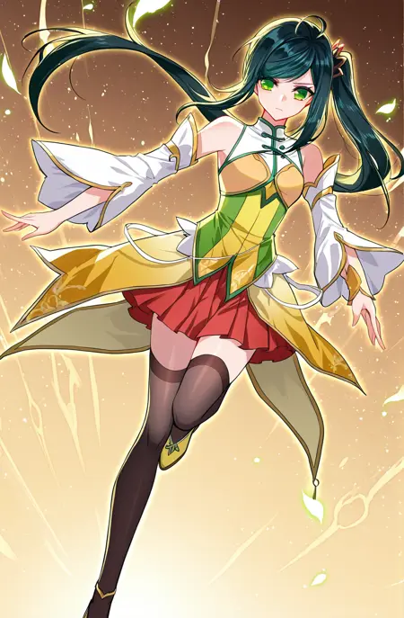 | 训练词汇 | Xiao, 1 girl, solo, green eyes, long hair, black hair, green tint hair, swept bangs, ponytail, side ponytail, hair ornament,已复制! Xiao_outfit01, school uniform, white jacket, fitted jacket, purple accents, lapel collar, purple bowtie, shoulder epaulets, ornamental chains, pleated skirt, short skirt, white skirt, white shirt, long sleeves, parted bangs已复制! Xiao_outfit02, blue military uniform, white trim, black lapels, high collar, yellow mini shoulder cape, blue sleeves, black sleeve stripes, white cuff trim, black cuffs, yellow chest ribbon, white inner shirt, blue plaid skirt, blue shoes,已复制! Xiao_outfit03, white military uniform, high collar, black trim, long sleeves, black armbands, black shoulder guards, tight fit, waist belt, black thigh-highs, visible thighs, short skirt已复制! Xiao_outfit04, sleeveless cheongsam top, yellow and green outfit, chinese-style top, white detached sleeves, ornamental long sleeves, leaf-shaped cuffs, frog buttons, high collar, gold trim, shoulder armor pieces, red pleated skirt, asymmetrical overskirt, petal-shaped overskirt, long flowing panels, black thigh-highs, sheer stockings, yellow shoes, pointed shoes, decorative trim shoes已复制! |