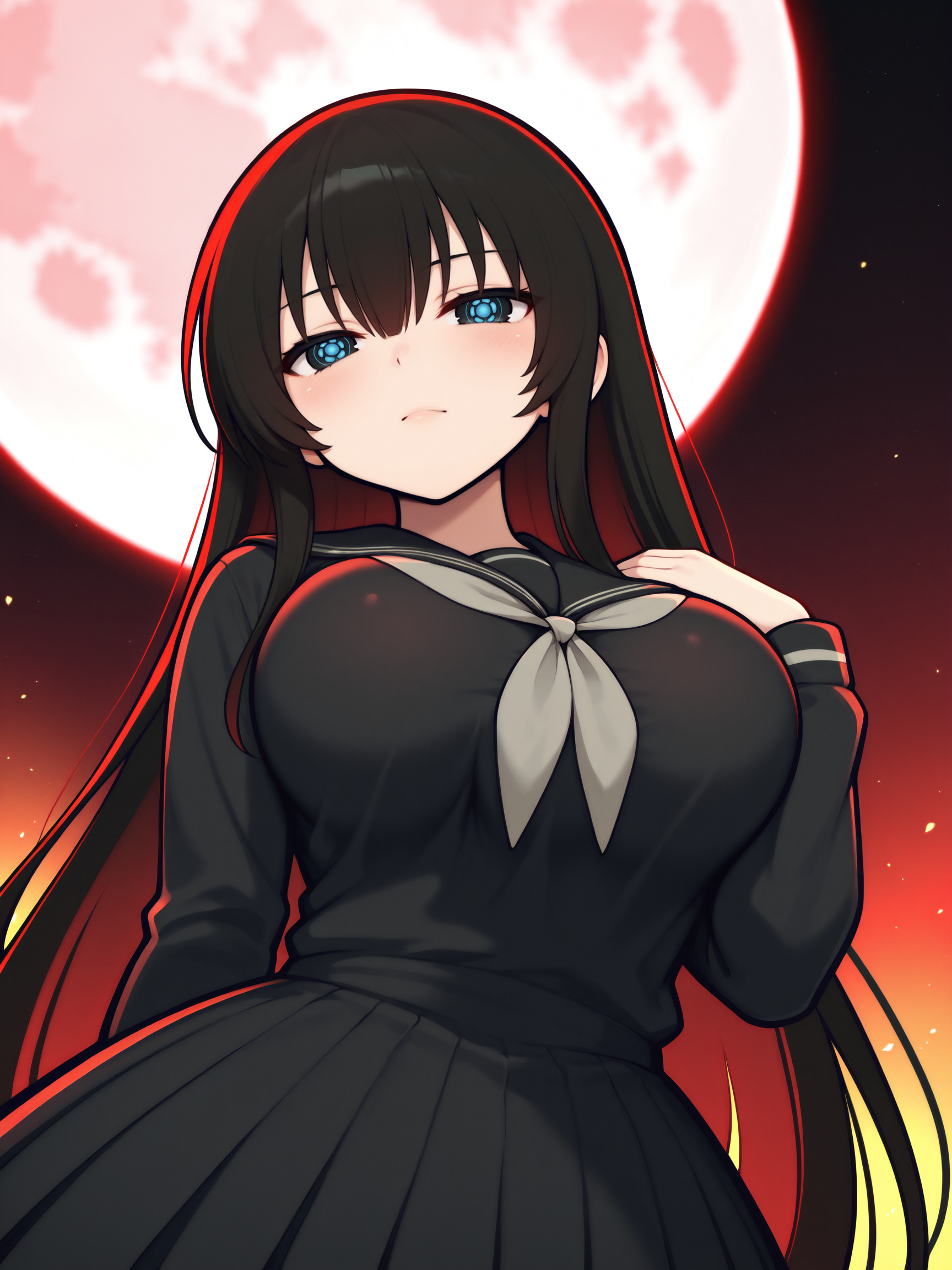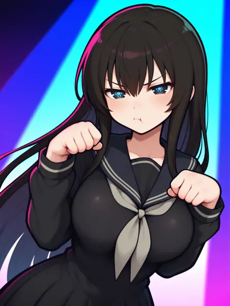 神乐普通形态的触发词为:“Kagura_IL,黑发,长发,大眼虹膜,黑色眼虹膜,虹膜蓝色纹路,大胸”;