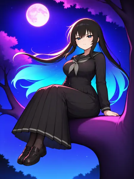 普通服装的触发词为:“Kagura_Main,长裙,黑色长裙,水手领,灰色丝带领结,长袖,蓬松褶皱裙摆,深色袜子,黑色乐福鞋”。