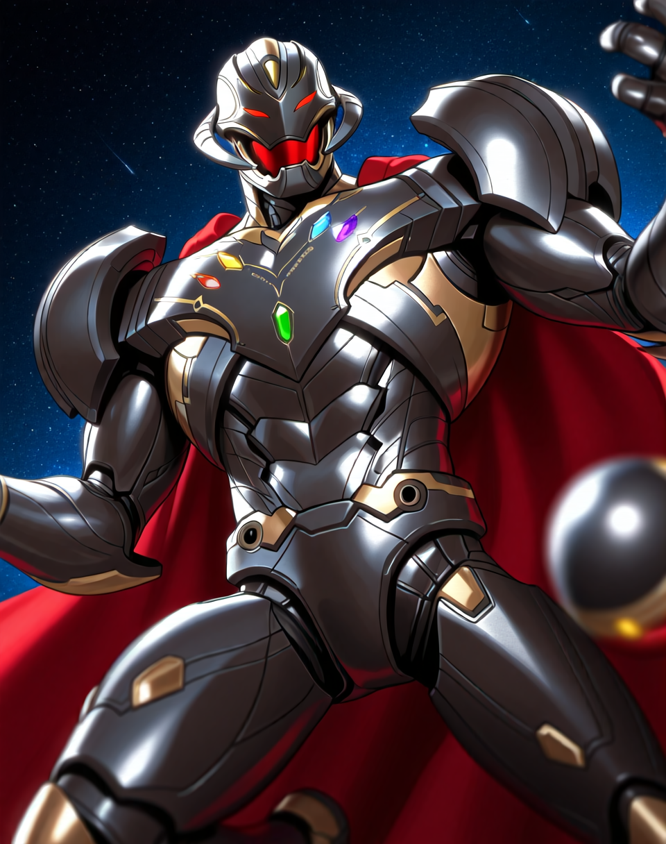 이것은 마블 만화의 캐릭터 울트론을 위한 일루스트리어스 스타일 LoRA입니다. 특히 마블 애니메이션 시리즈 'What If?'에서 인피니티 스톤을 얻은 울트론 인피니티의 외형을 반영합니다.