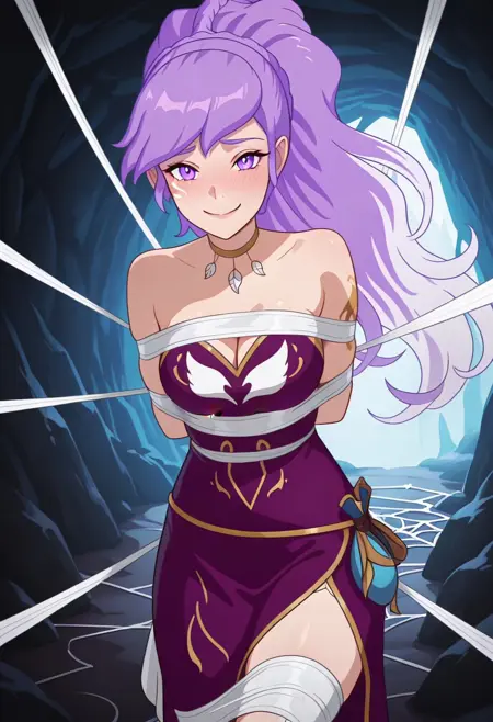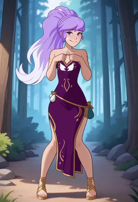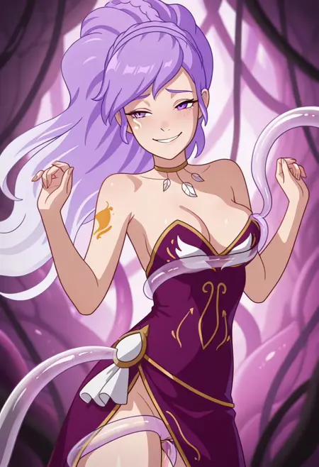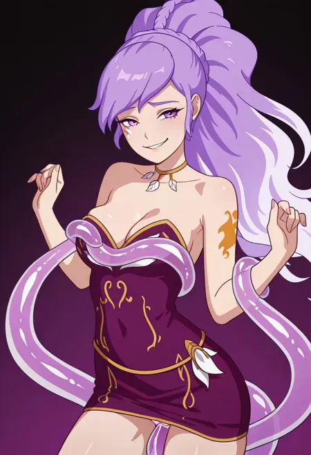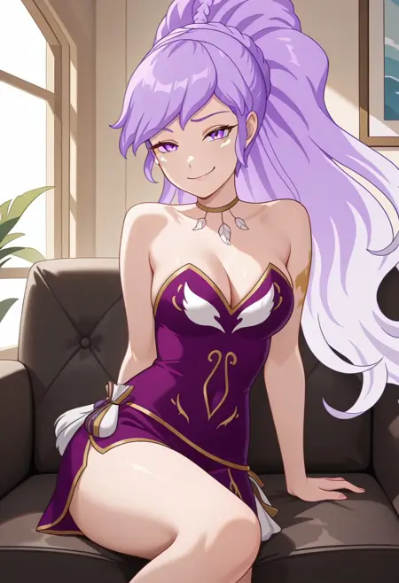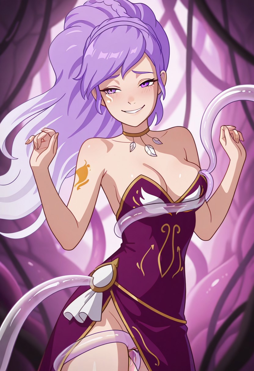 purple dress, sleeveless, strapless dress, bare shoulders,