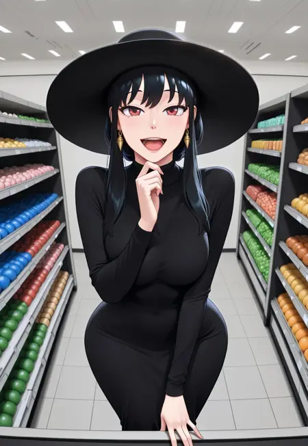 A couple of the training images had the black sun hat but it's not as consistent so watch out for that if you want it. Just add "sun hat, black hat" or "big sun hat, black hat" to your prompt.
