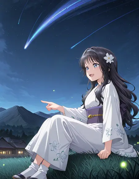 <lora:kaoruko_waguri-kaoru_hana_s1-v3-ixl-anime-soralz:1>, kaoruko waguri (kaoru hana), alternate hairstyle, medium hair, black hair, wavy hair, blue eyes, single hair bun