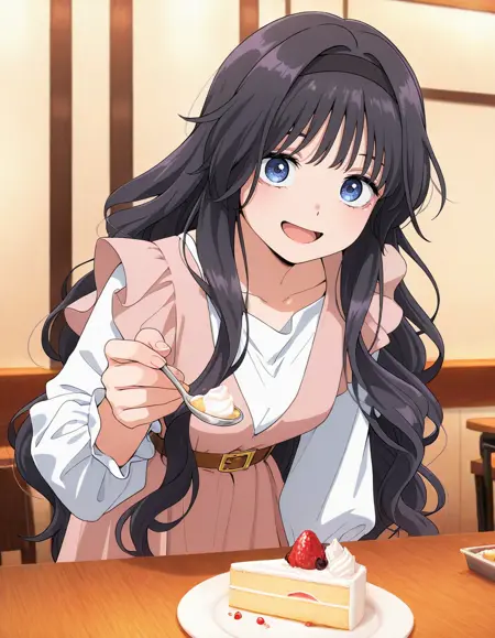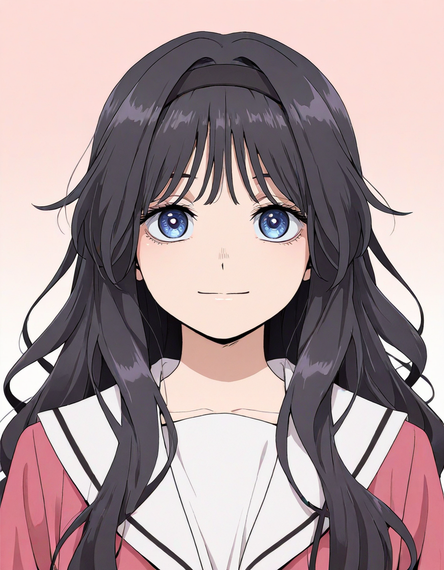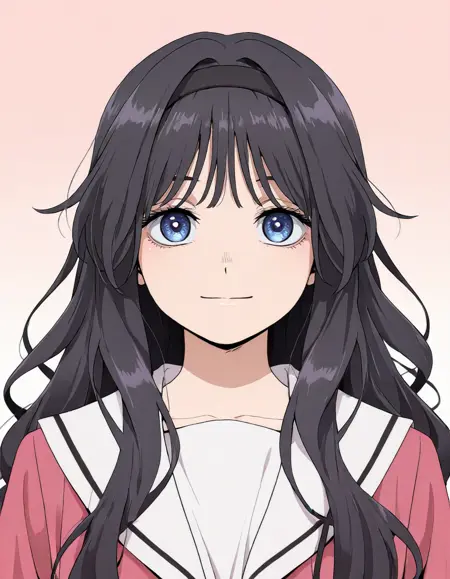 <lora:kaoruko_waguri-kaoru_hana_s1-v3-ixl-anime-soralz:1>, kaoruko waguri (kaoru hana), long hair, black hair, black hairband, wavy hair, sidelocks, blue eyes