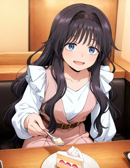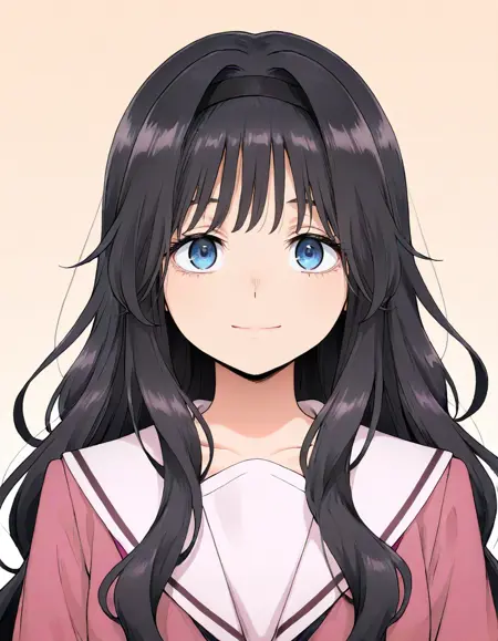 <lora:kaoruko_waguri-kaoru_hana_s1-v3-ixl-anime-soralz:1>, kaoruko waguri (kaoru hana), long hair, black hair, black hairband, wavy hair, sidelocks, blue eyes