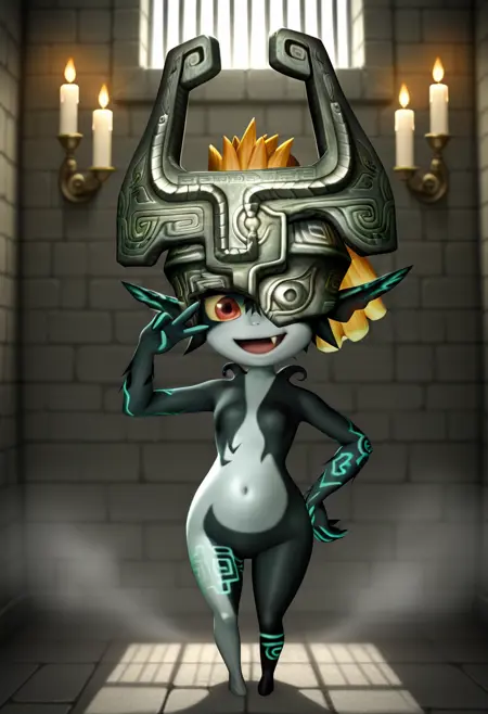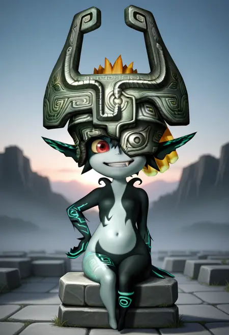 Midna from LoZ:Twilight Princess and also, Hyrule Warriors. The little Imp that guided Link after he got taken into the Twilight and transformed into a Wolf. This is my take on Midna. After studying many of the other Loras on the website I noticed that most of them had a style that strayed too far from the game. My goal was to make this one as accurate to the game and official artwork as possible. And I believe I mostly succeeded.