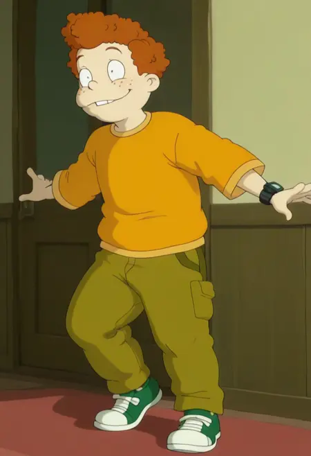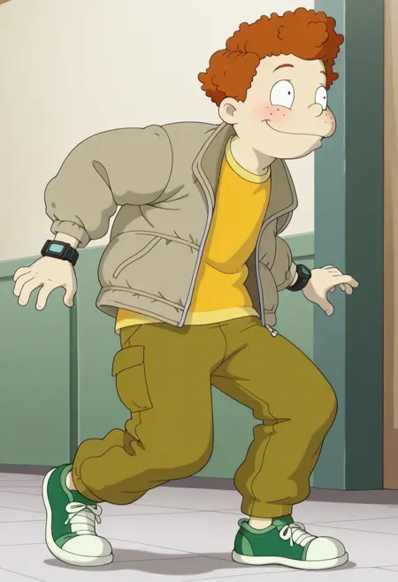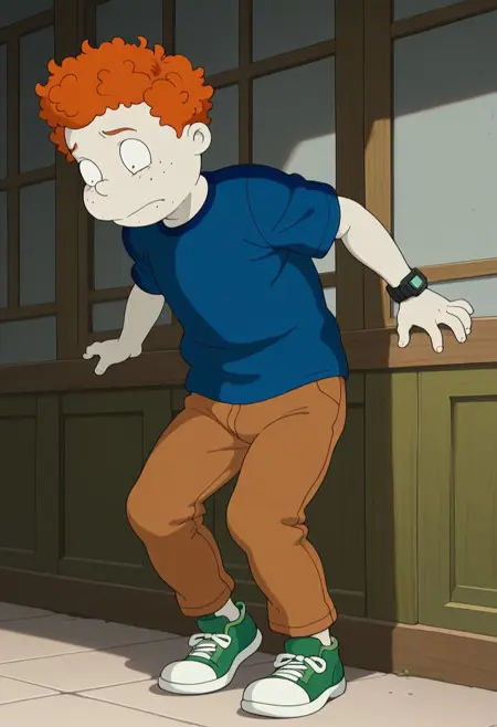 1시즌: 해롤드 프럼킨, 혼자, 1소년, 주황색 곱슬머리, 창백한 피부, 두더지자국, 손목시계, 파란 셔츠, 갈색 바지, 초록 신발