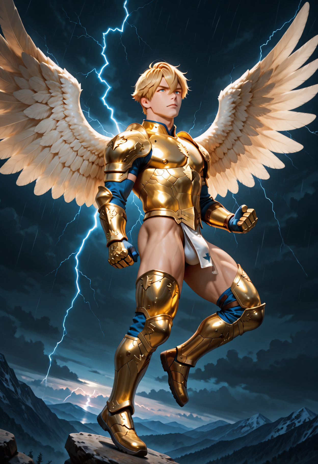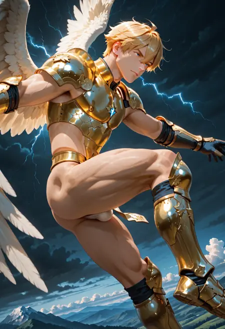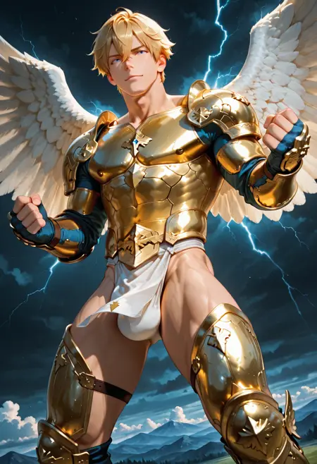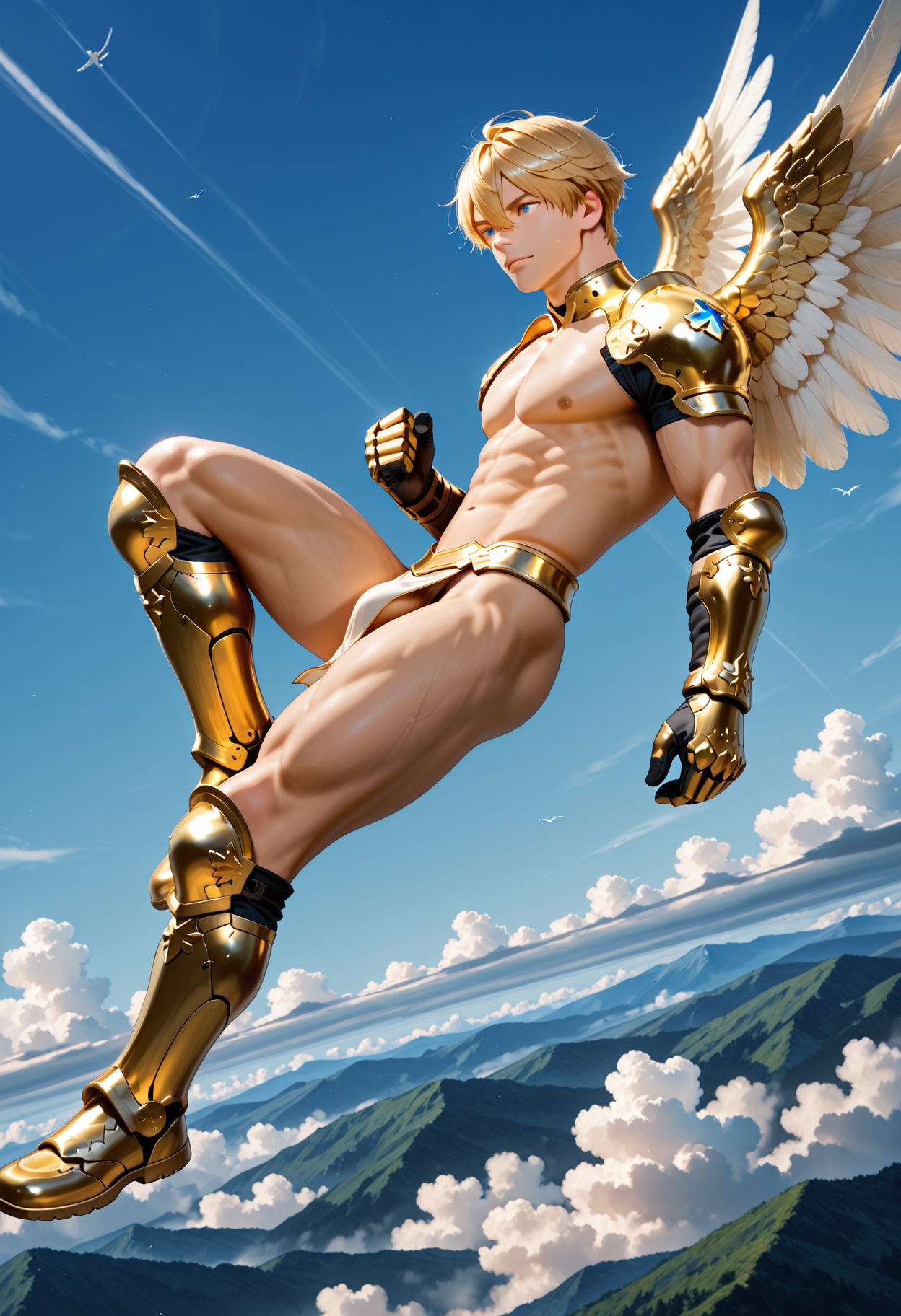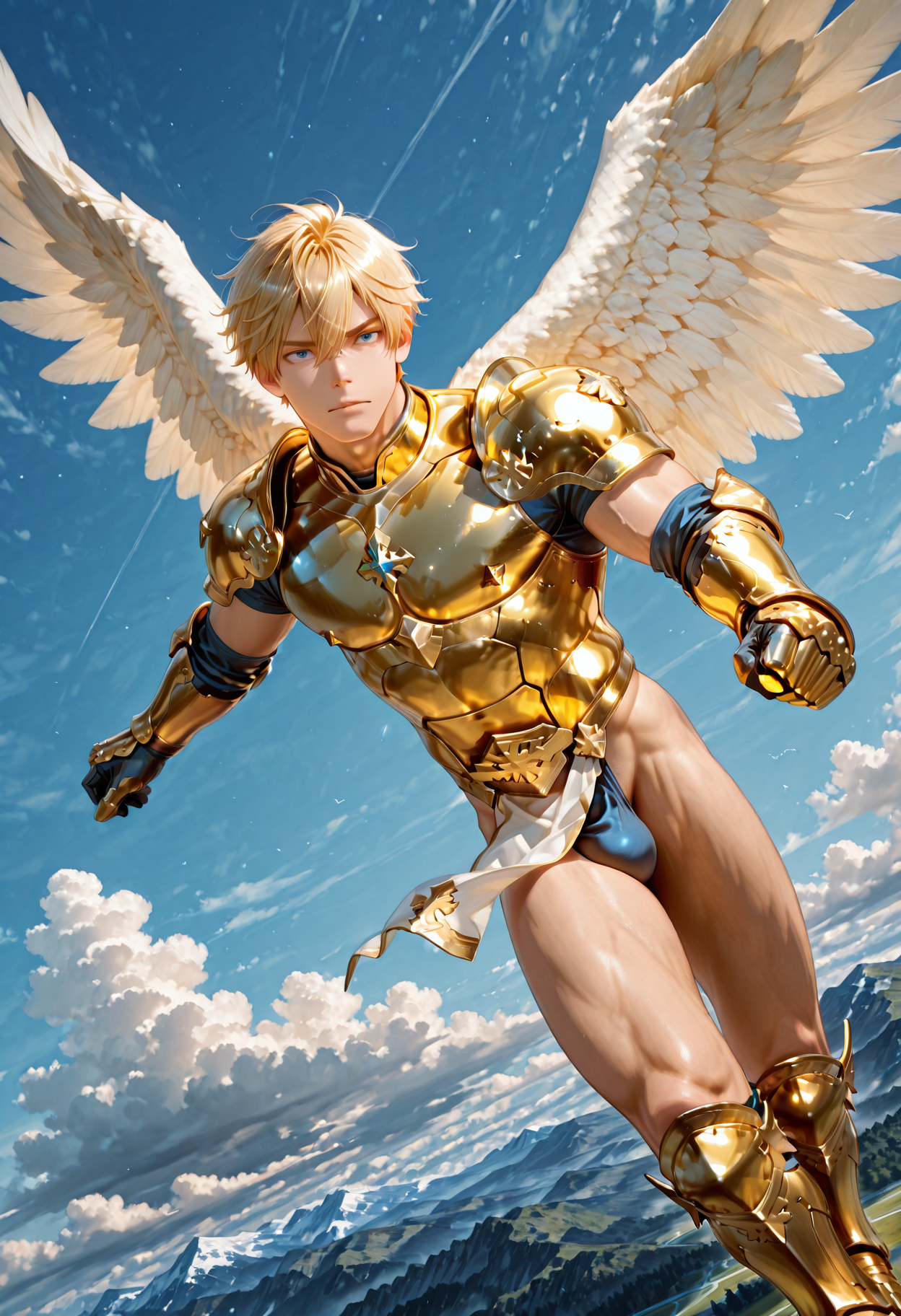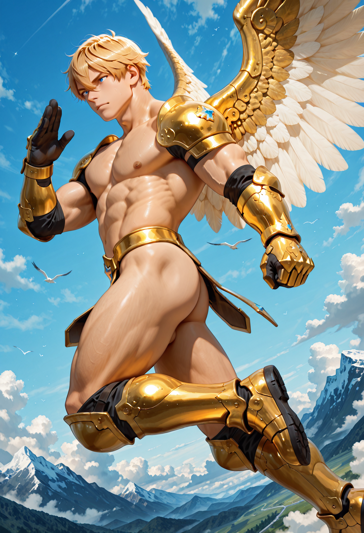 金色盔甲、盔甲靴、肩甲、颈甲、腕甲、肘甲、盔甲手套、腰甲、裆布、膝甲、小腿甲、翅膀,
