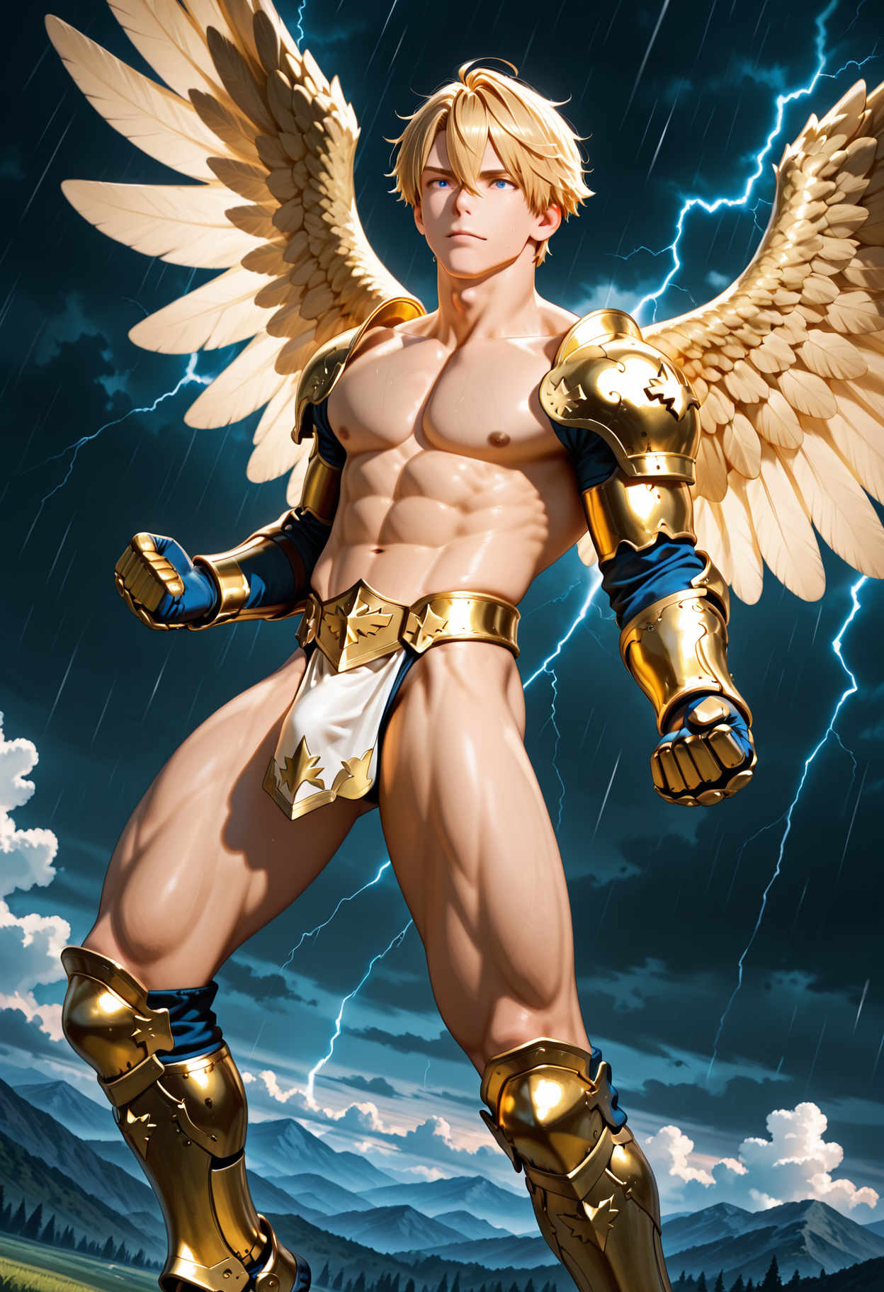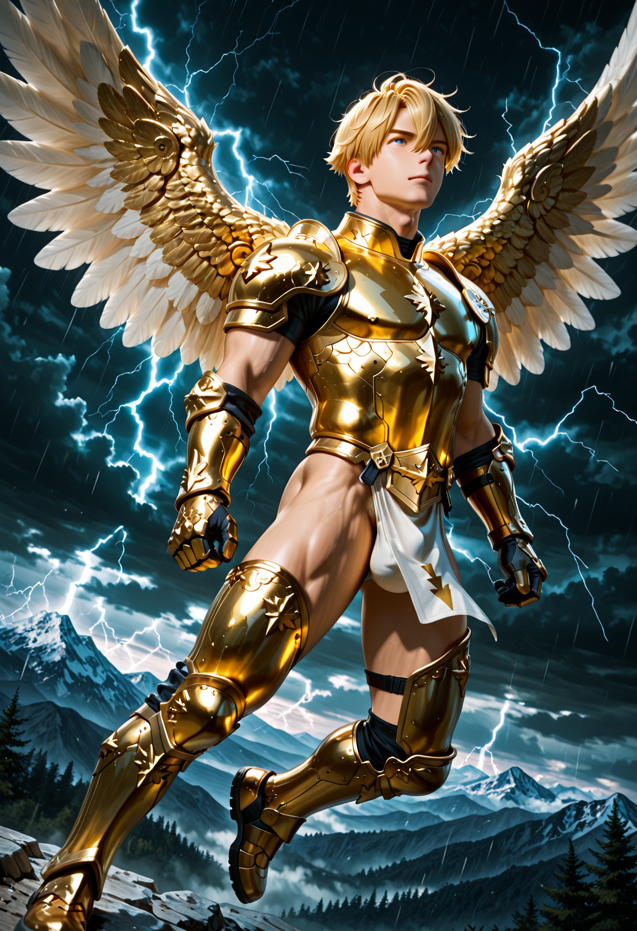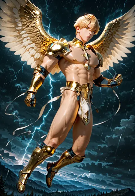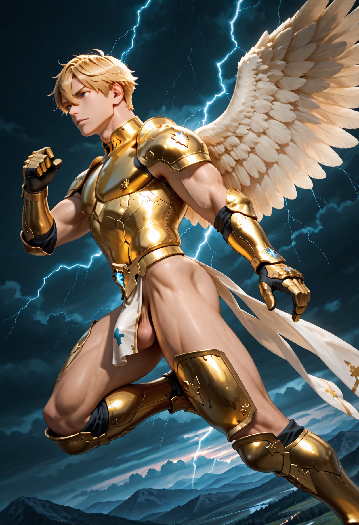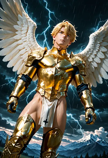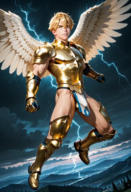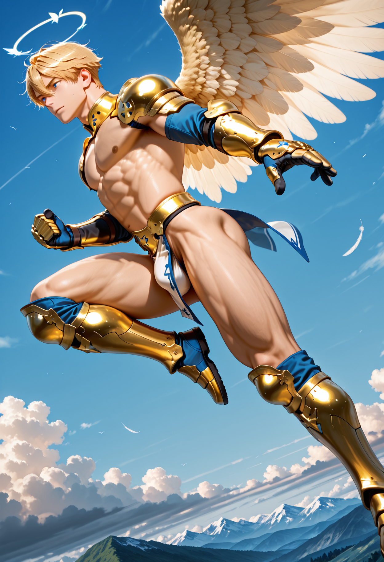 金色盔甲、盔甲靴、肩甲、颈甲、腕甲、肘甲、盔甲手套、腰甲、裆布、膝甲、小腿甲、翅膀,