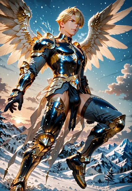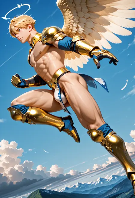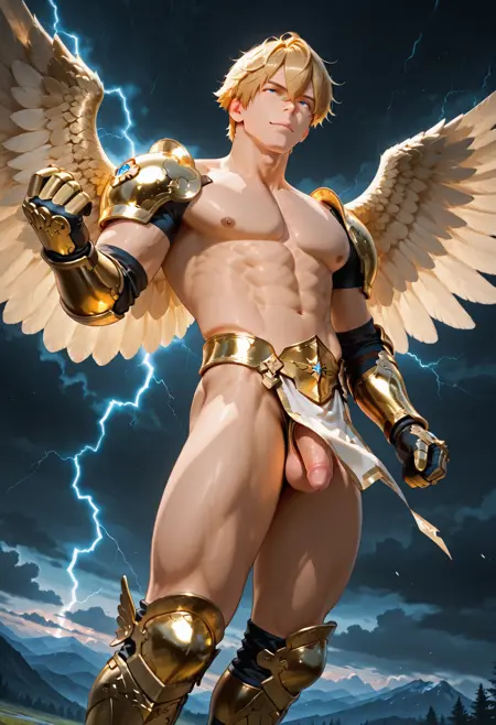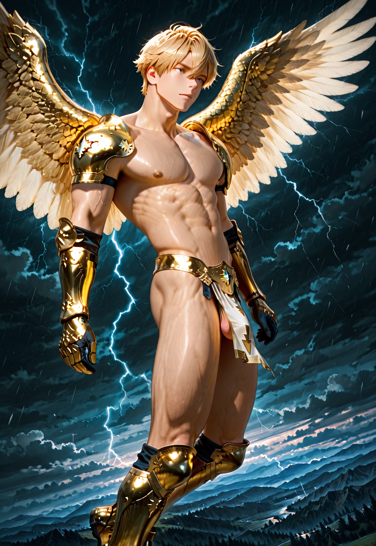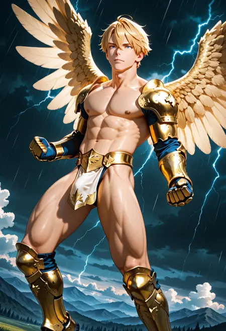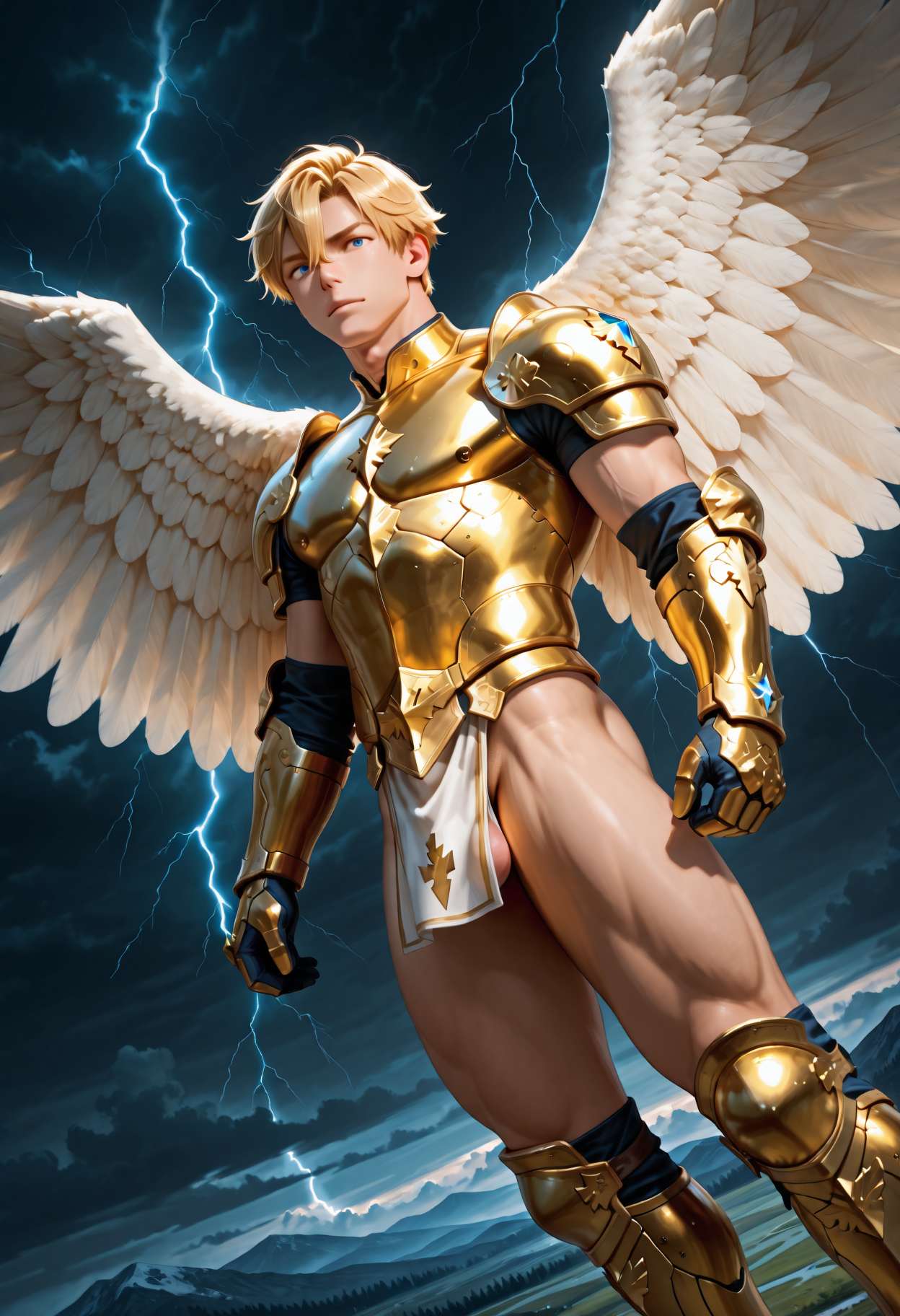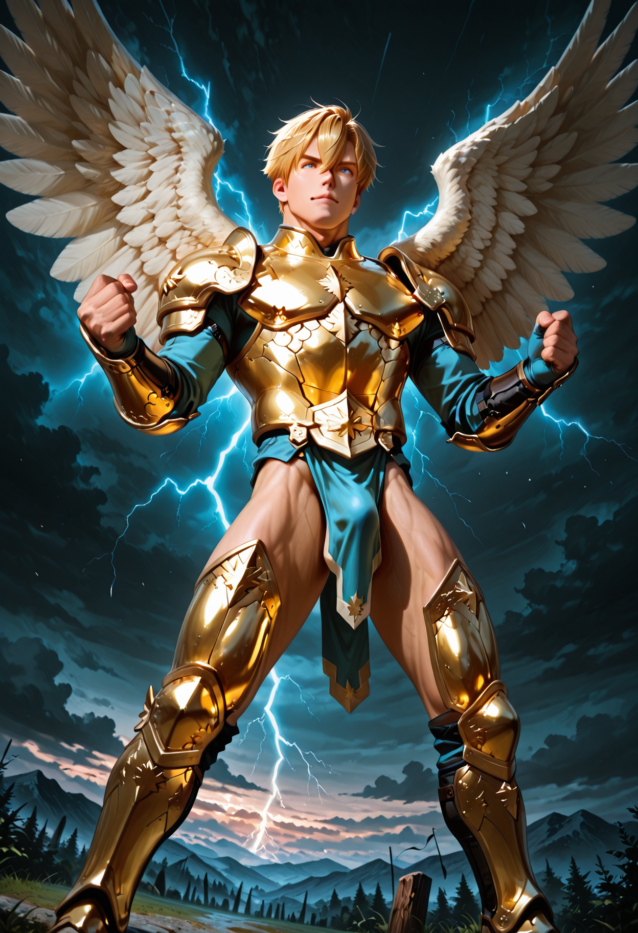 金色盔甲、盔甲靴、肩甲、颈甲、腕甲、肘甲、盔甲手套、腰甲、裆布、膝甲、小腿甲、翅膀,