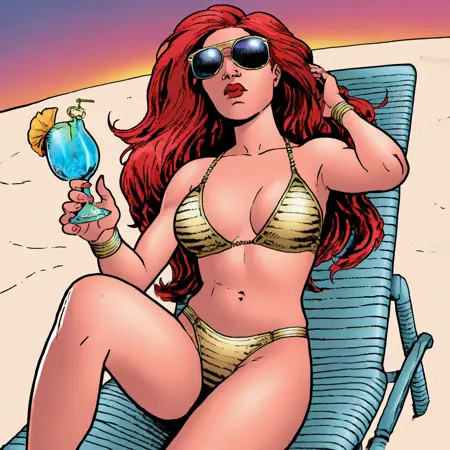 コミックからの直接のショットを試してみました。スタイルを適切に捉えられています。より有名または人気のあるバージョンではなく、X-Menの基礎的なシリーズからのジャンを描きたかったです。衣装を変更する際は、デフォルトの衣装プロンプトをネガティブプロンプトに入れるのが最適です。