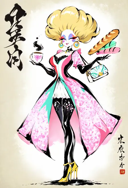かわいい梨スタイル XL は、伝統的な書道と表現的な肖像画の詩的で内省的な調和を捉えたLoRAです。