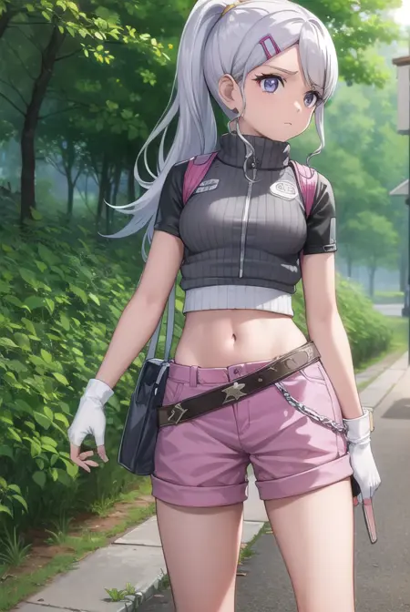 手套,肚脐,珠宝,短裤,露脐装,腰带,露指手套,短上衣,粉红色短裤,