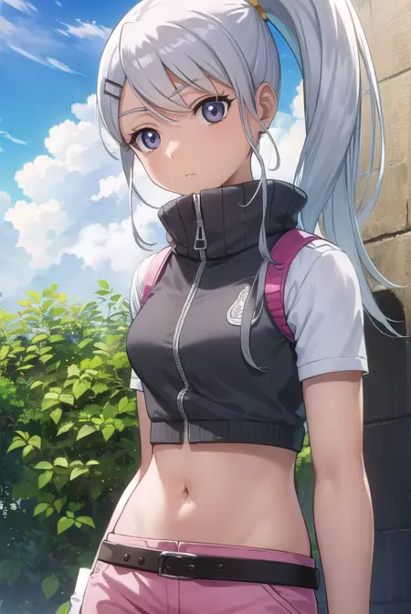 julie makimoto,长发,发饰,马尾辫,白发,发夹,深色皮肤,深肤色女性,(灰色眼睛:1.5),