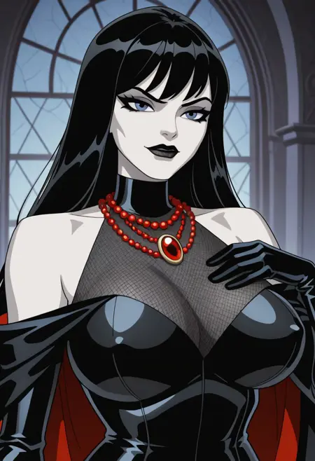 | トレーニングワード | 1woman, Selene Gallio, pale skin, bluish grey irises, dark heavy eye shadow, eyeliner, eyelashes, black lipstick, long straight black hair, aristocratic face, red gemstone necklace, red beaded jewelry, black latex bodysuit, black halter neck catsuit, bare shoulders, chest window, sheer mesh chest panel, mesh window over cleavage, black mesh insert covering chest window, visible nipples through mesh, opera gloves, gothic fashion, dominatrix, dark fantasy, high fashion, flowing black cape, red cape interior, halter off shoulder cloak, cold shoulder cape sleeves, halter neck cloak, high collar gothic cape,コピーしました! |