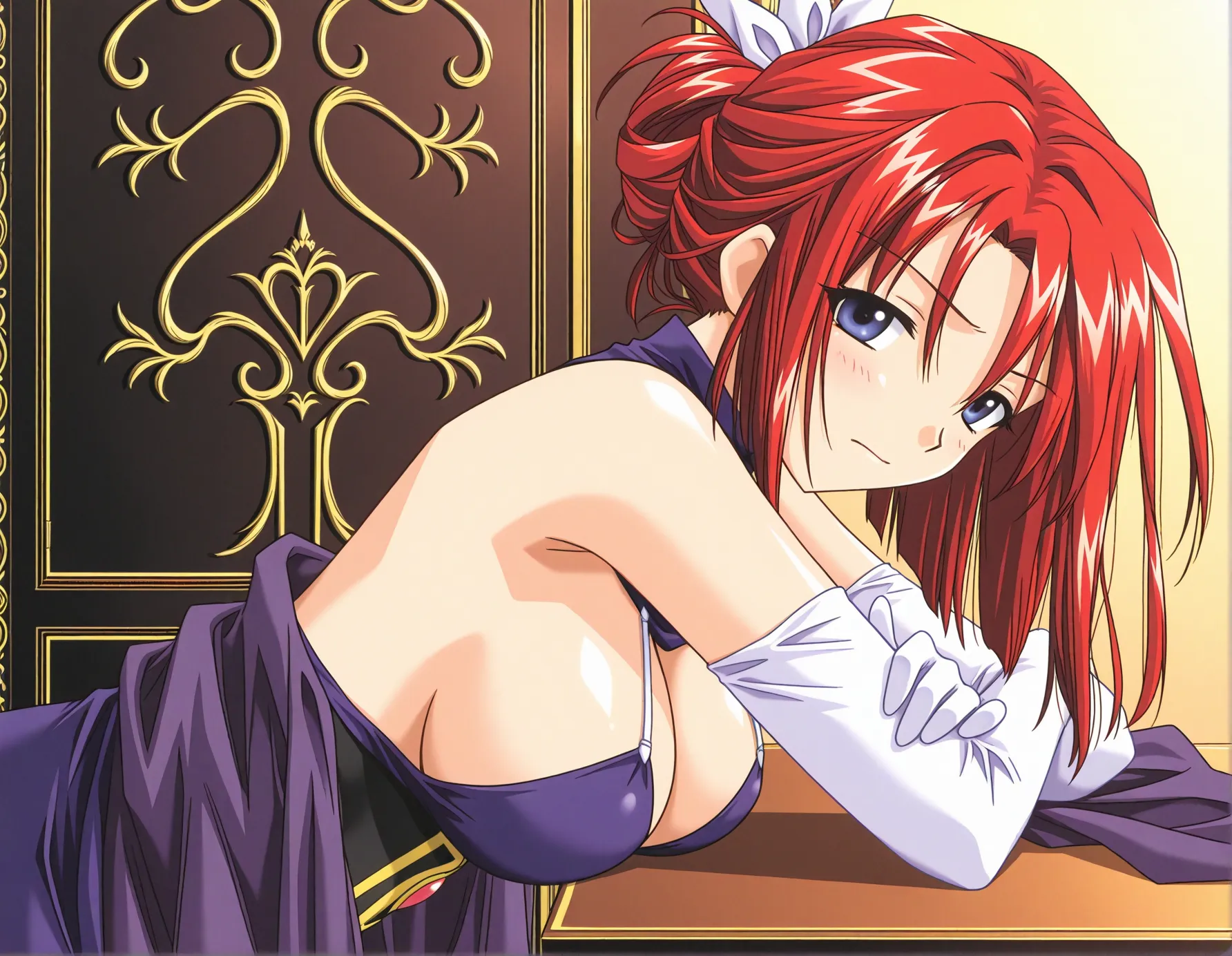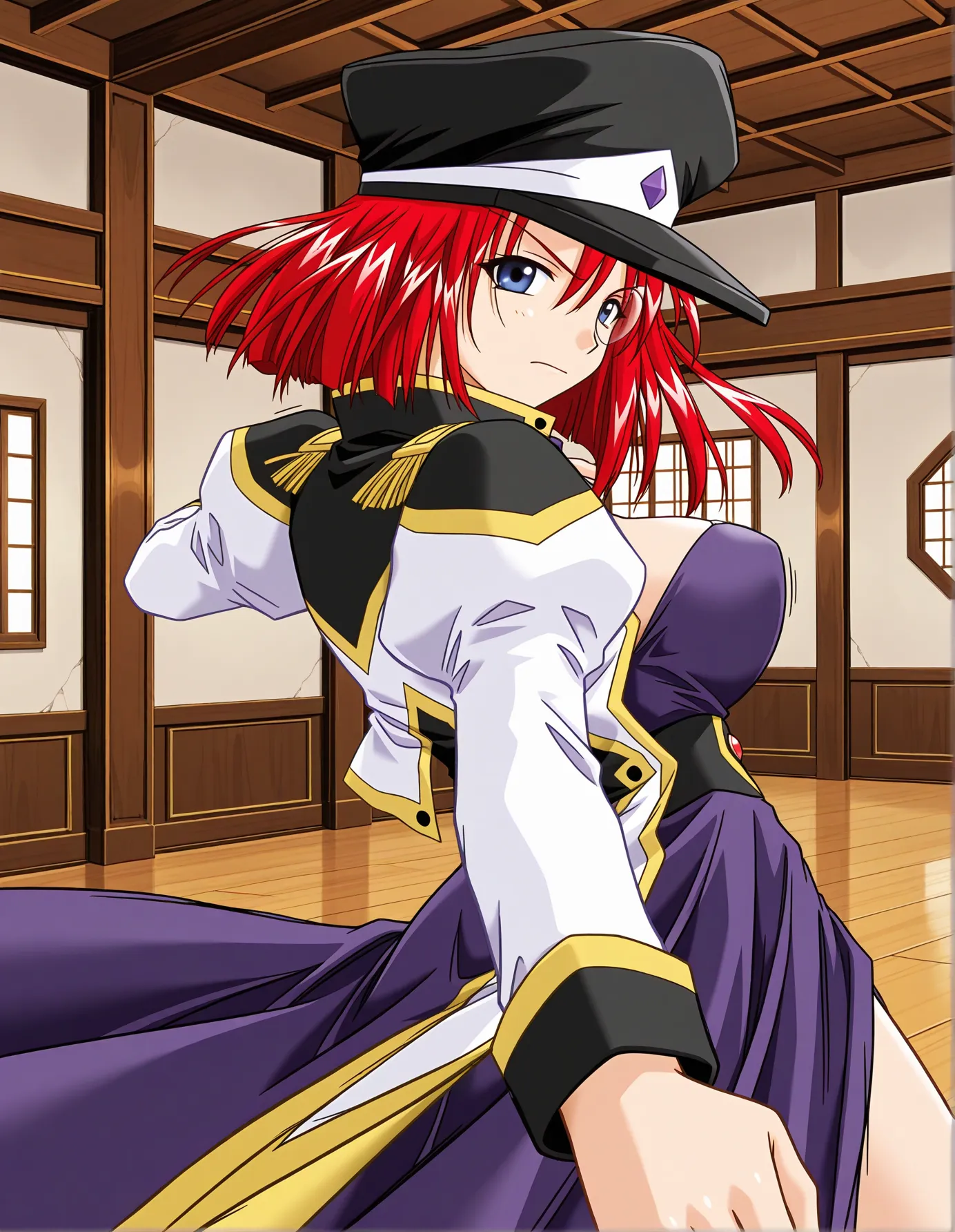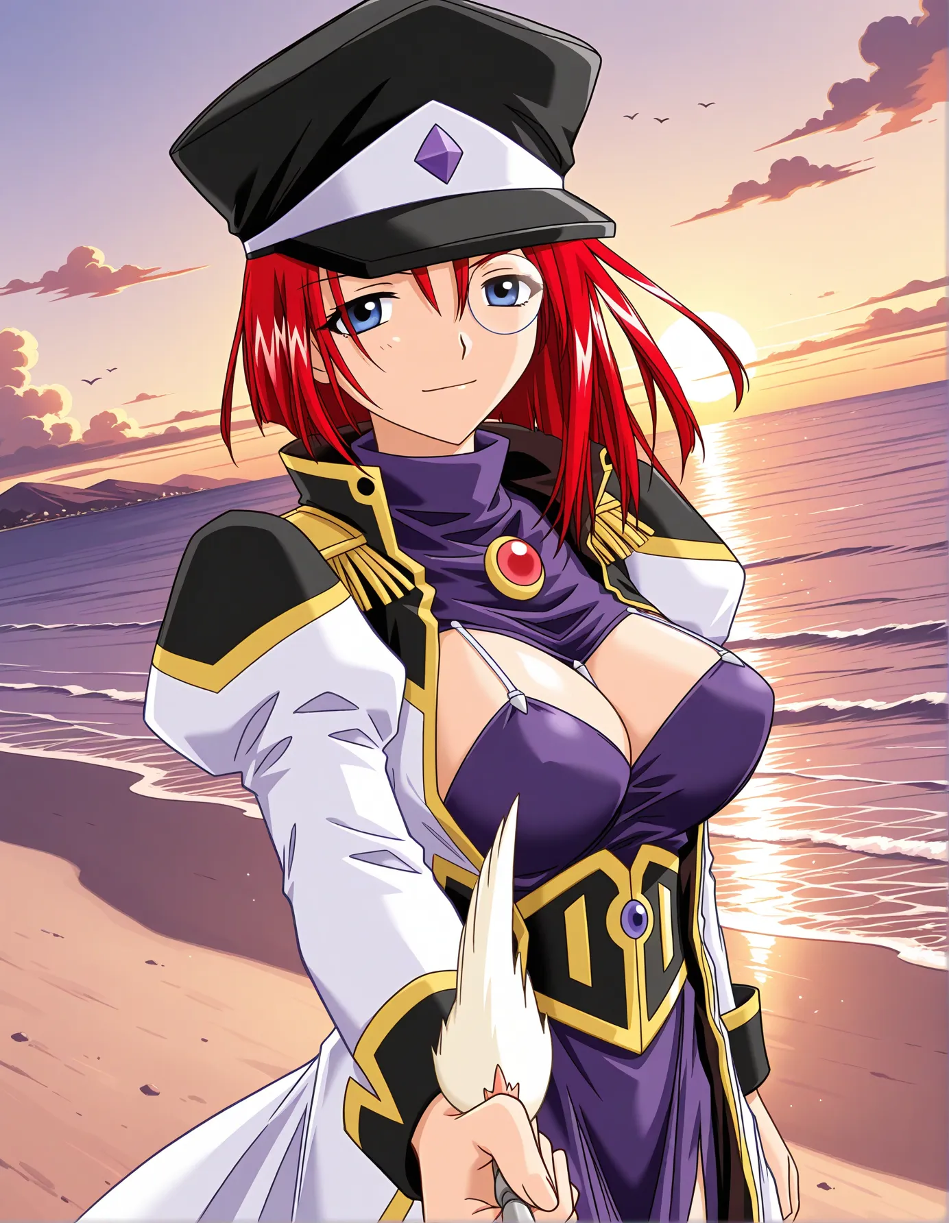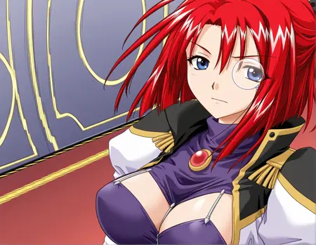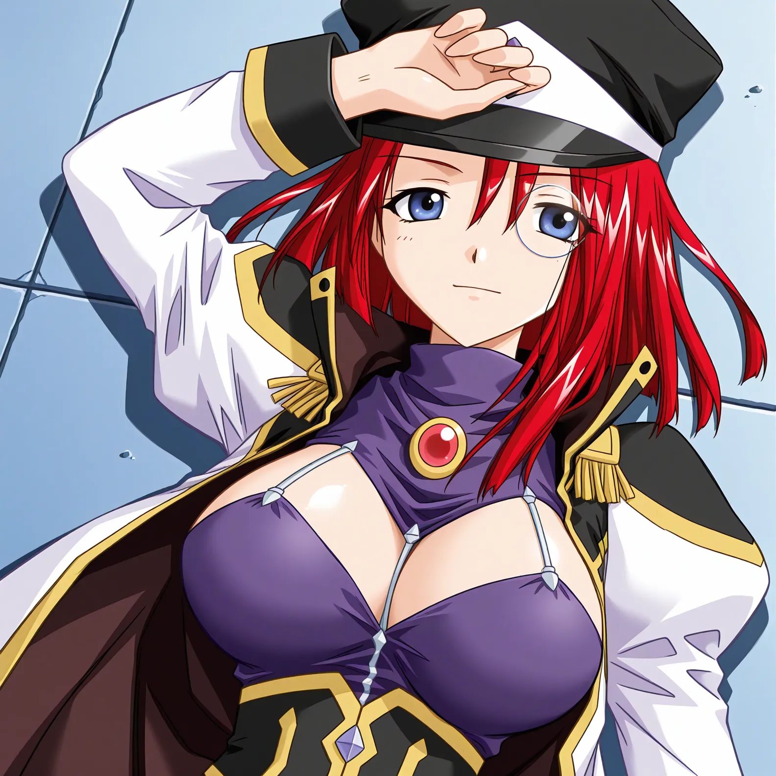 galaxy angel,forte stollen,red hair,short hair,blue eyes,monocle,large breasts