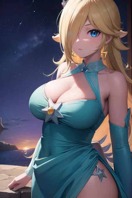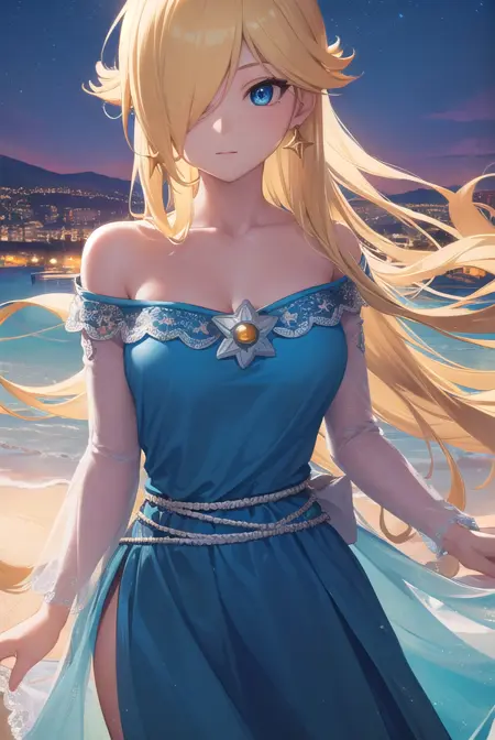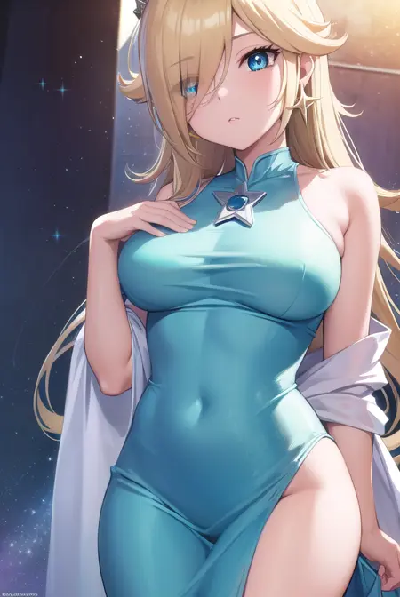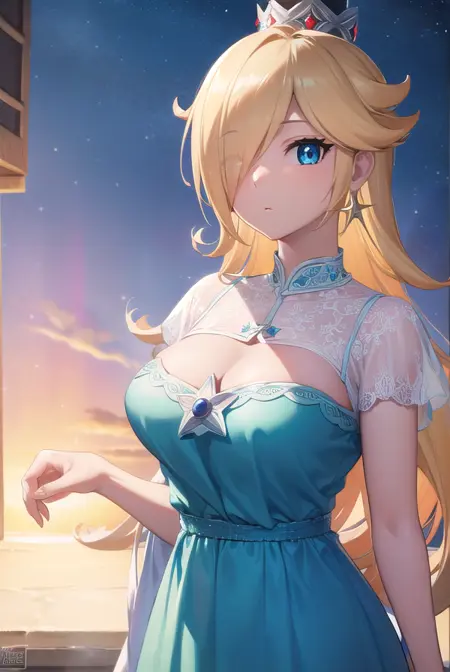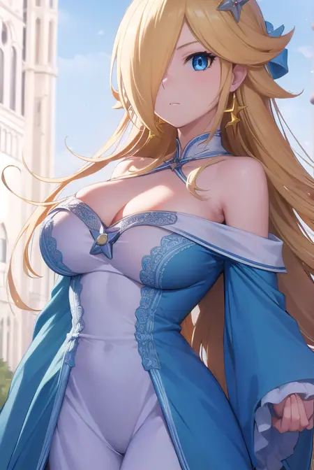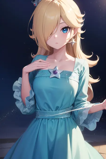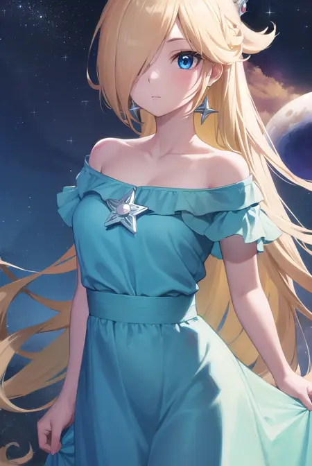 rosalina,金发,蓝眼睛,头发遮住一只眼睛,长发,