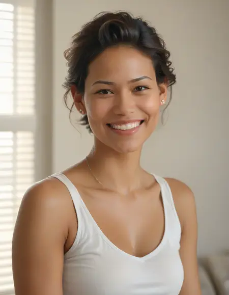Trained with a blend of photos of similarly looking photos and AI generated images for character consistency. No real person is represented.