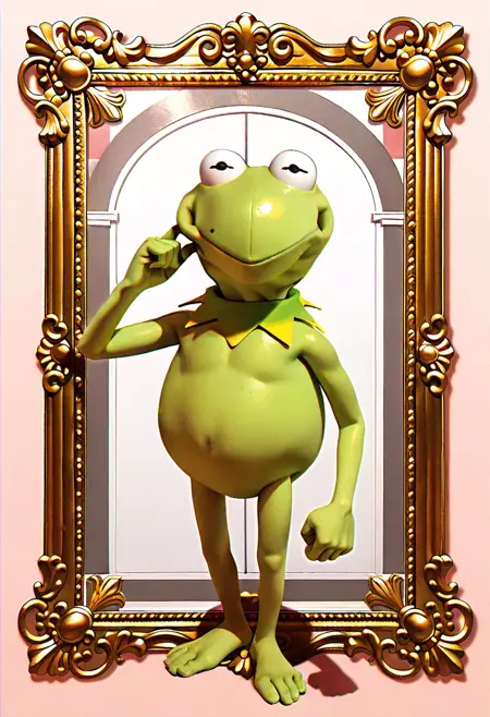 ConstantineTM, 1boy, bright green body, spiky light green collar, large black eyes, round, mole on left cheek