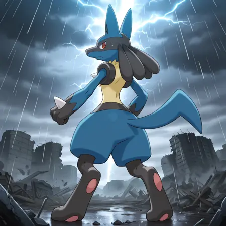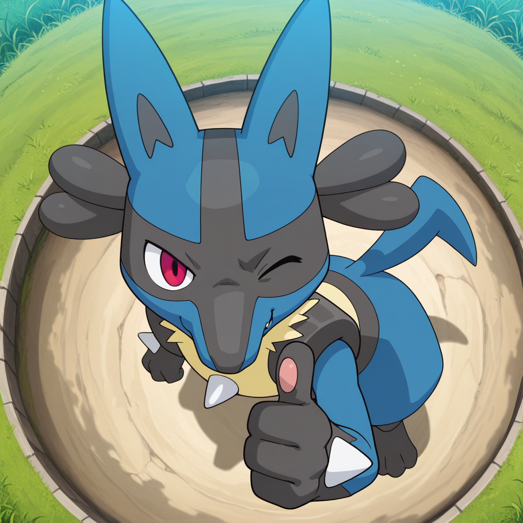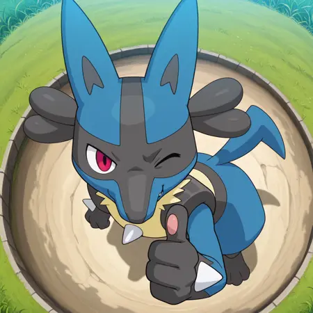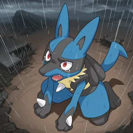 | 학습된 단어 | male, furry male, anthro, solo, pokemon (creature), jackal-like, bipedal, blue fur, black fur, yellow fur, three-tone fur, red eyes, snout, sharp teeth, fangs, pointed ears, black inner-ears, 3 spikes, pawpads, tail복사됨! official style, anime coloring복사됨! |