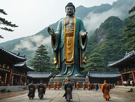 quiet expressionsoft natural lightritual lightingearly morning fogwarm shadowsweathered texturestraditional architecture