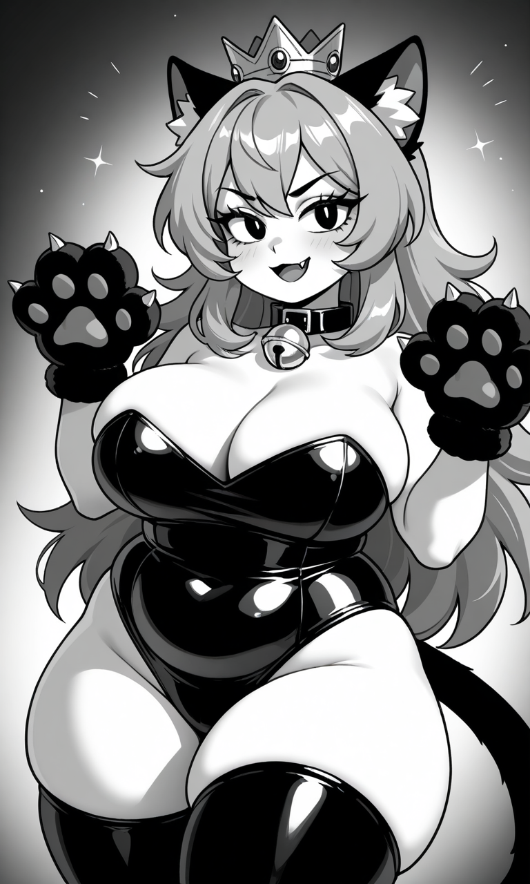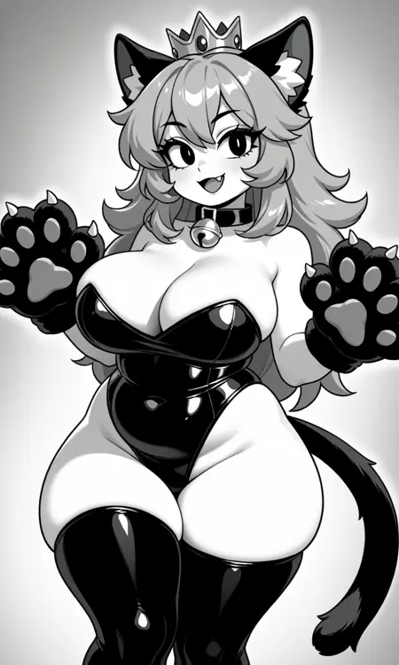 | トレーニングワード | Mallory_(shipy_oc),1girl,rubberhose,cat girl,cat ears,cat tail,cat paws,cleavage,cleavage dress,thighhighs,thighs,chubby,black dress,gray hair,gray crown,crown on head, breasts,monochrome, greyscale,leotard, long hair,wide hips,claws,bare shoulders,collar_bell,eyelashes,black eyelids,large breasts,fang,strapless leotardコピーしました! |