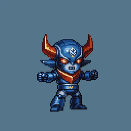 推奨:robot, mecha, chibi, standing, blue background, solo