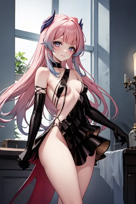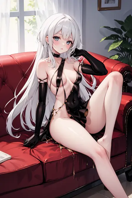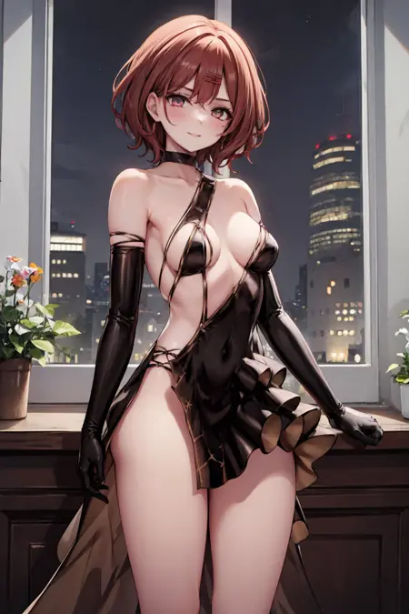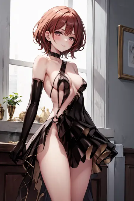 触发词:black dress, elbow gloves, black gloves, choker